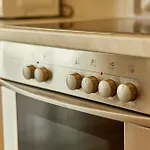 Dieses Apartment verfügt über komplette Küche mit einem Wasserkocher, einem Kühlschrank und einem Herd sowie über Ausstattung zur Kaffee- & Teezubereitung.